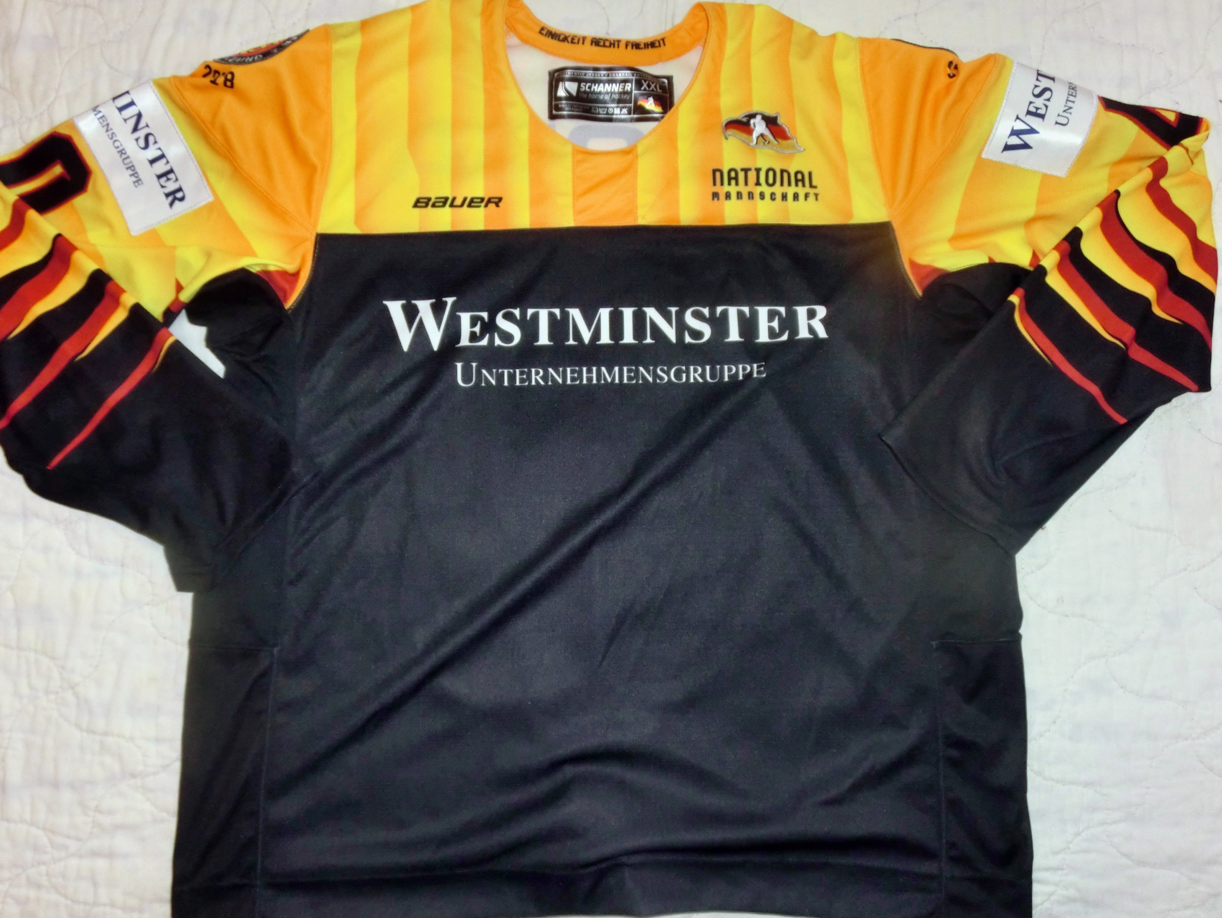 Ein Original Gameworn Eishockeytrikot von der deutschen Eishockey Nationalmannschaft exklusiv bei uns erhältlich.